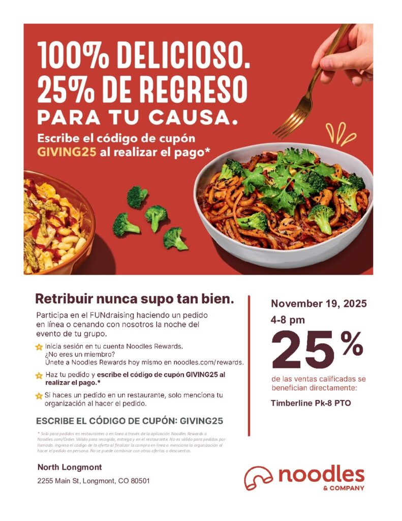 Noodles and Company Fundraising Night – Wednesday, November 19th